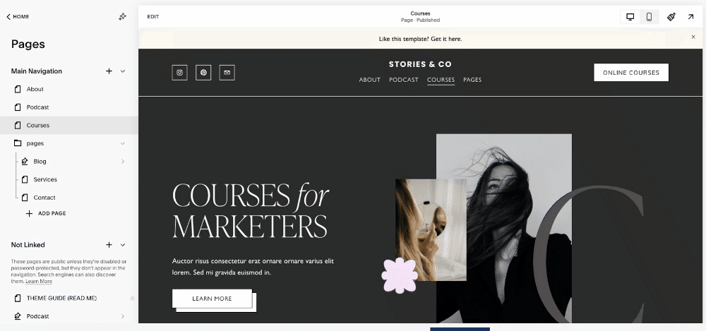 I also advise you to watch the course and prepare your content before tweaking the template. The course walks you through Squarespace website builder and explains how to customize your template using basic design principles. Watching it before jumping into tweaking ensures the best possible outcome.